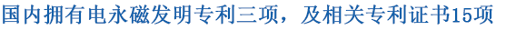 千豪磁電在電磁研究領(lǐng)域保持創(chuàng)新精神,三項(xiàng)發(fā)明專(zhuān)利(蜂巢磁力模板,永磁吸吊器,電磁感應(yīng)加熱裝置),電永磁相關(guān)專(zhuān)利證書(shū)多達(dá)15項(xiàng)。